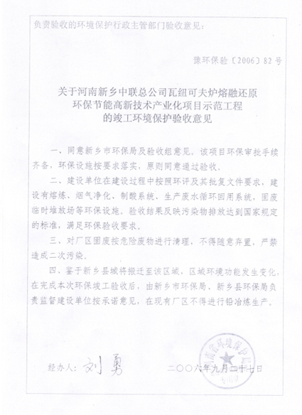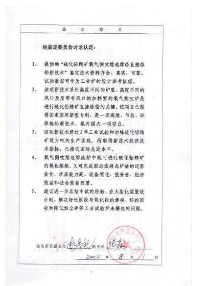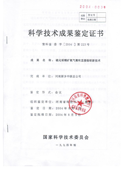 2001年新乡中联公司引进并建造了1.5㎡侧吹炉,陆续投入三千多万元用于侧吹炉炼铅试验。经过4年30多次开炉试验取得成功,开创了在世界上用富氧侧吹炉工业化炼铅的先河,形成了具有自主知识产权的富氧侧吹熔炼技术,为我国乃至世界的铅冶炼技术发展作出了贡献。